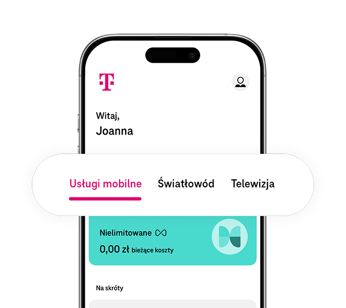 Jeśli szukasz usług idealnie skrojonych pod własne potrzeby, w naszej sieci znajdziesz dokładnie to, co Cię interesuje. Możesz zamówić abonament z nielimitowanymi rozmowami, SMS-ami i MMS-ami bądź jeden z pakietów T-Mobile na kartę. Obie oferty pozwolą Ci wykorzystać wszystkie możliwości, jakie dają zaawansowane smartfony. Kupiony w T-Mobile telefon zapewni Ci dostęp do wielu nowoczesnych funkcji, jak Dual SIM czy AI. Dostarczamy również usługi, które pomogą Ci codziennie cieszyć się multimedialną rozrywką. Chodzi o internet światłowodowy, którego prędkość dochodzi do 900 MB/s oraz internet bezprzewodowy bez limitu prędkości i danych. Może zainteresować Cię także telewizja T-Mobile z dostępem do 193 kanałów. Niezwykle korzystnie wypada ponadto oferta pakietów dla domu, dzięki której w ramach jednego pakietu kupisz abonament komórkowy, telewizję oraz internet T-Mobile. Blog T-Mobile Polska – dziesiątki przydatnych porad w jednym miejscu Na naszym blogu znajdziesz artykuły, które ułatwią Ci poruszanie się po świecie nowoczesnych technologii. Prezentujemy tam: poradniki dla domu i biznesu, z których na przykład dowiesz się, czym jest usługa eSIM albo internet mobilny bez limitu; cyber rady, w których opisujemy sposoby ochrony przed hakerami; rankingi i testy różnych urządzeń, jak smartfony, smartwatche czy laptopy. Blog T-Mobile Polska jest stale przez nas rozwijany, dlatego warto na bieżąco śledzić teksty, które się na nim pojawiają. T-Mobile to także profesjonalna obsługa klienta Każdego dnia do Twojej dyspozycji pozostaje infolinia T-Mobile, w której pracują również tłumacze języka migowego. Dzięki niej możesz zamówić nasze usługi, a także uzyskać pomoc techniczną. Ponadto dostępny jest czat z konsultantem T-Mobile. Wiele spraw, na przykład wymianę karty SIM na eSIM, szybko i wygodnie załatwisz również w aplikacji Mój T-Mobile.
