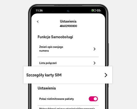 W sekcji Funkcje Samoobsługi kliknij w "Szczegóły karty SIM"