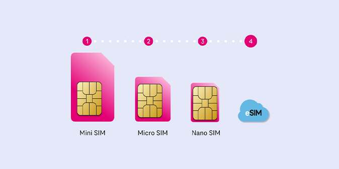 Od Mini SIM do eSIMKarta eSIM (profil eSIM) to wirtualna karta SIM, pobierana przez internet na urządzenie funkcją eSIM. Kartę eSIM pobierasz skanując kod QR otrzymany od T-Mobile. Po pobraniu karty eSIM, musisz ją włączyć w urządzeniu w którym chcesz niej korzystać, aby korzystać z naszych usług (rozmów, SMS/MMS, internetu mobilnego) tak samo, jakby w urządzeniu była zwykła karta SIM.