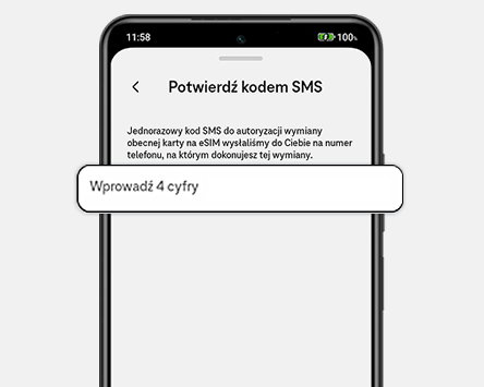 Wpisz kod, który otrzymasz SMS-em na numer, którego dotyczy wymiana.