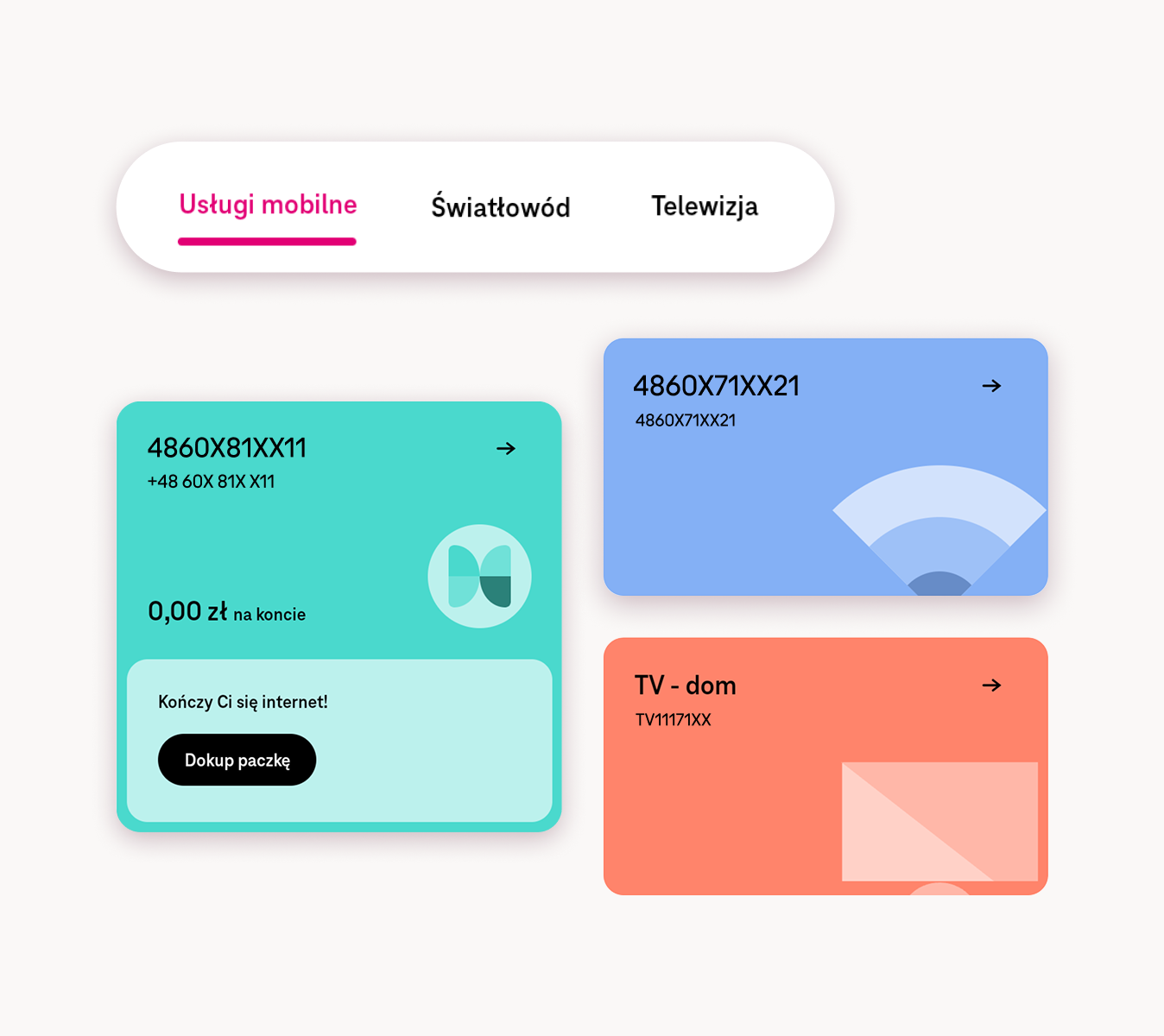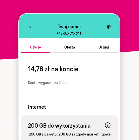 Możesz zobaczyć wszystkie swoje usługi w jednym miejscu - niezależnie od tego czy to abonament, numer na kartę czy światłowód! Dodaj do aplikacji wszystkie numery, którymi chcesz zarządzać.