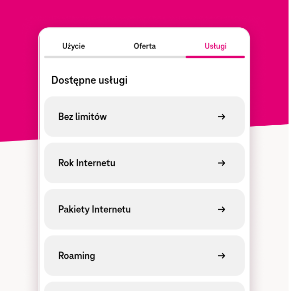- Zarządzanie usługami dodatkowymi takimi jak bezpieczna rodzina, dodatkowe pakiety danych czy usługi rozrywkowe