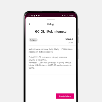 Pierwszy otrzymujesz po aktywacji usługi, a kolejne podczas odnawiania oferty GO! XL za 50 zł co 30 dni